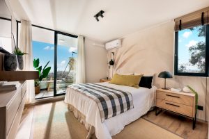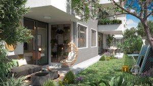 El proyecto cuenta con departamentos de 2 y 3 dormitorios con primeros pisos con patio privado exclusivo y 4tos pisos con terrazas panorámicas integradas.